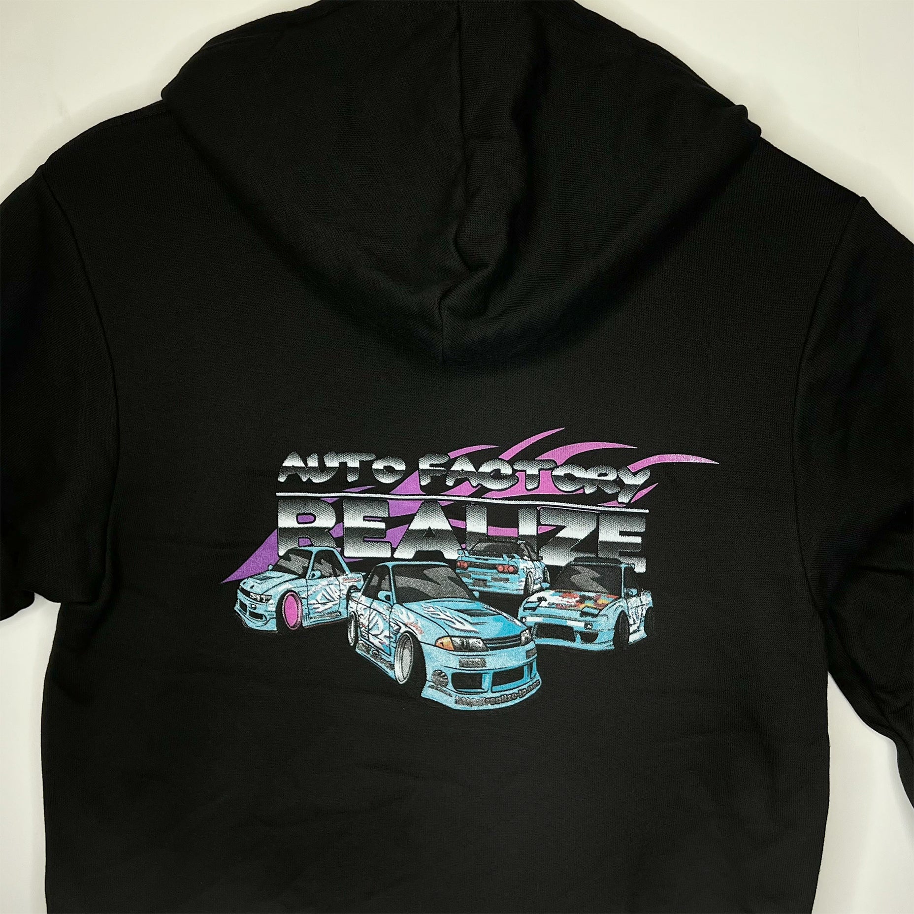 Get ready to rock the official threads of AUTO FACTORY REALIZE! This hoodie features a detailed print of all 4 clapped out Realize cars on the back of each hoodie, making it the perfect way to represent these clowns on and off the track.